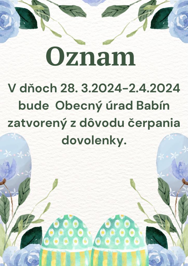 Úradné hodiny počas Veľkej noci